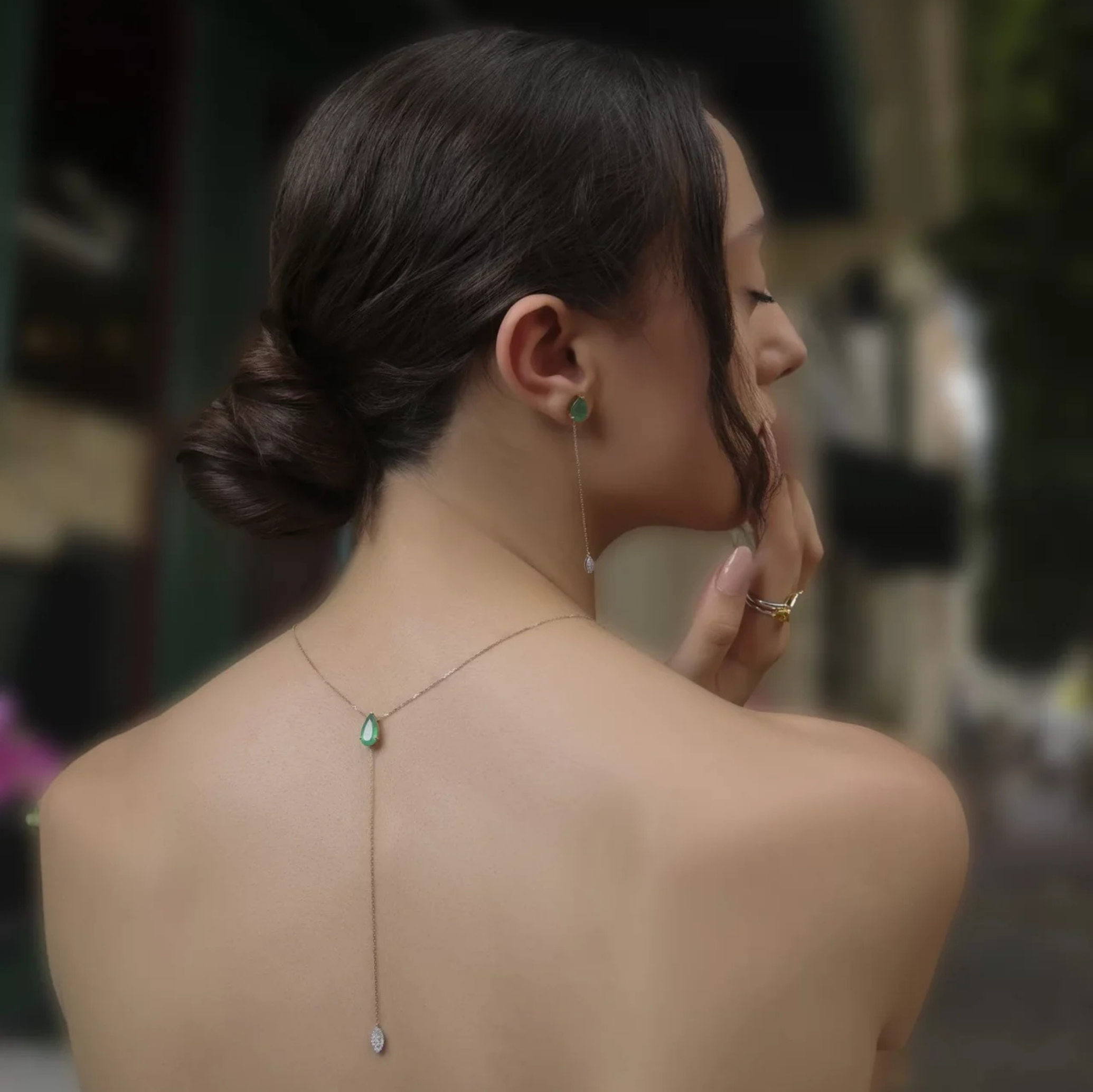 These exquisite earrings offer unmatched versatility, effortlessly transitioning from day to night. Worn as elegant solitaire studs by day, they transform with a delicate chain attachment for added evening sophistication. Crafted in a refined blend of white and yellow gold, they feature approximately 4 carats of natural emeralds and 0.12 carats of brilliant round diamonds.