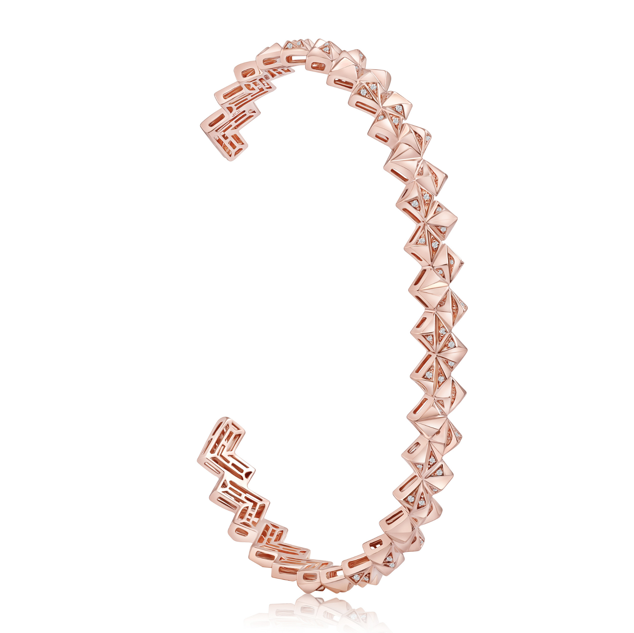 18K Rose Gold (gross weight 12 – 14 g) VS /SI melees Diamond ( Available in three thicknesses and three gold colors — yellow, white, and rose.