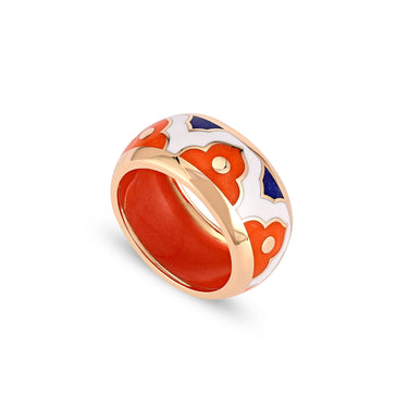 Step into a world of vibrant color and regal elegance with the Aladdin Ring. Featuring bold orange and navy blue enamel, this handcrafted piece is designed to make a confident statement. Available for preorder in US sizes 5–8, with custom sizing available for a flawless fit.