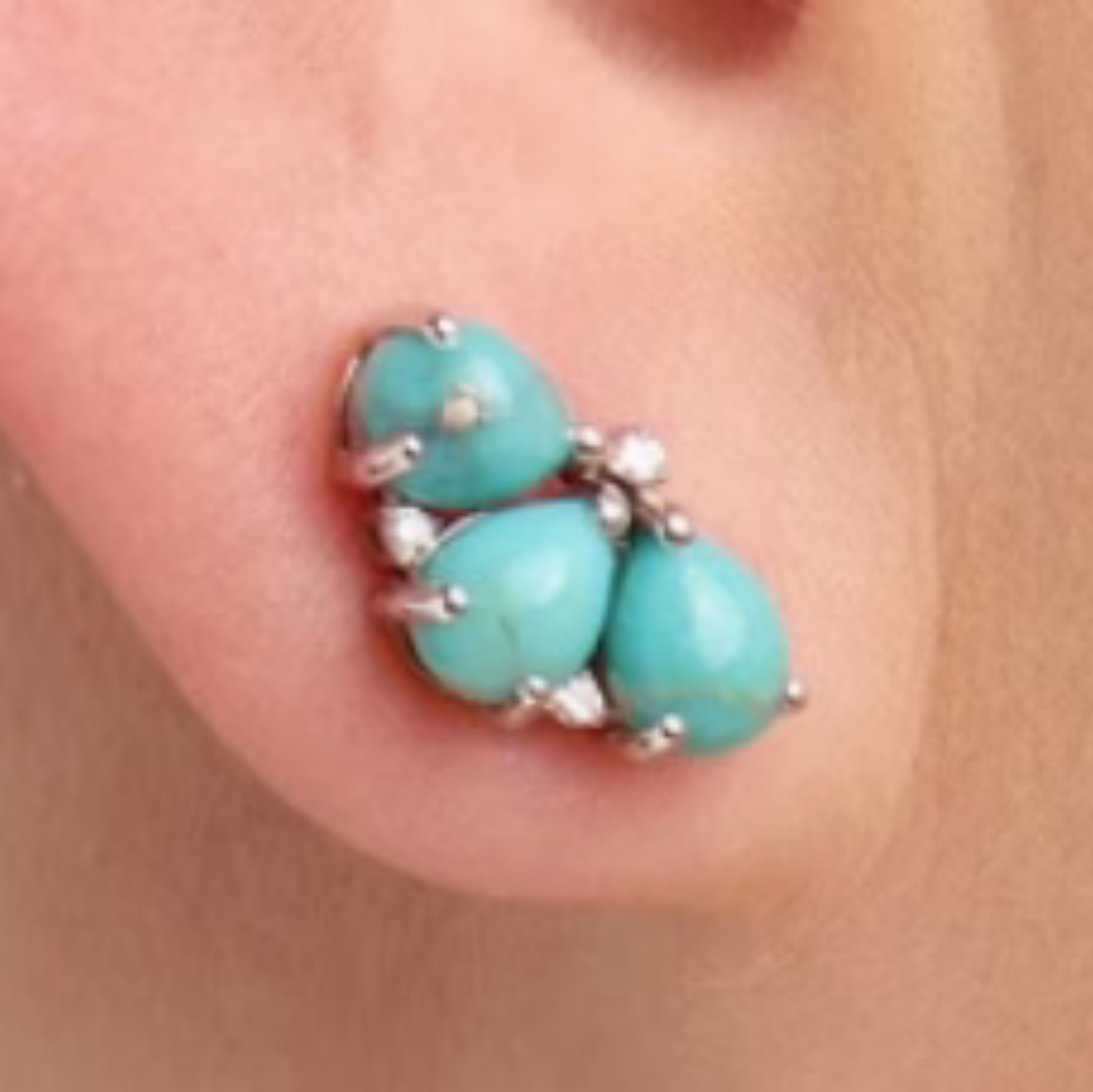 18k white gold Earrings with 2.61ct turquoise and 0.03 ct VS/SI diamonds.