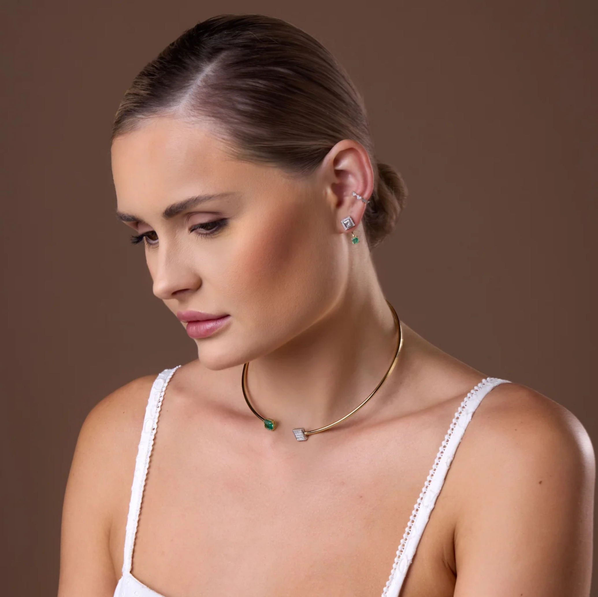 18K yellow gold Necklace with 2.10 ct emerald cut, accented by 1.85 diamonds(VS).