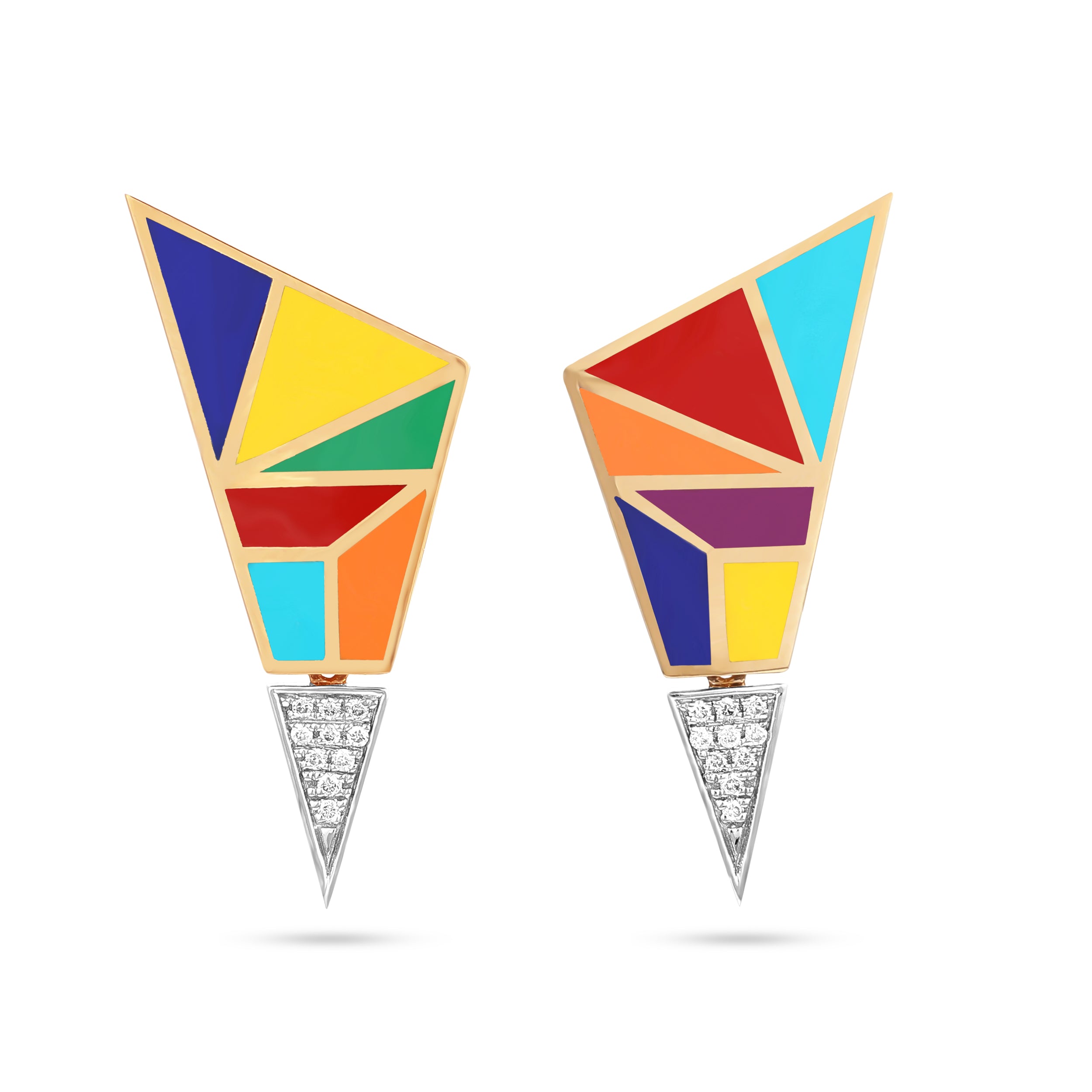 Introducing the Aurora Earrings—a striking blend of elegance and modern design. Crafted in 18k white and yellow gold (\~7–8 grams), they feature bold ceramic accents and are adorned with \~0.07 ct of natural VS–SI diamonds for a refined touch of sparkle.